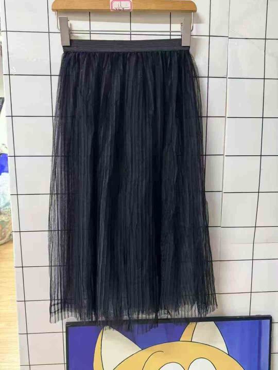 4.5清300件双层网纱半身裙百褶裙a字裙高腰显瘦百搭仙...
