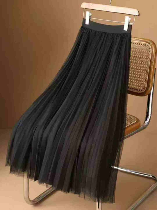 4.5清300件双层网纱半身裙百褶裙a字裙高腰显瘦百搭仙女裙小清新大摆网纱裙春夏 码数均码 透明防水袋装