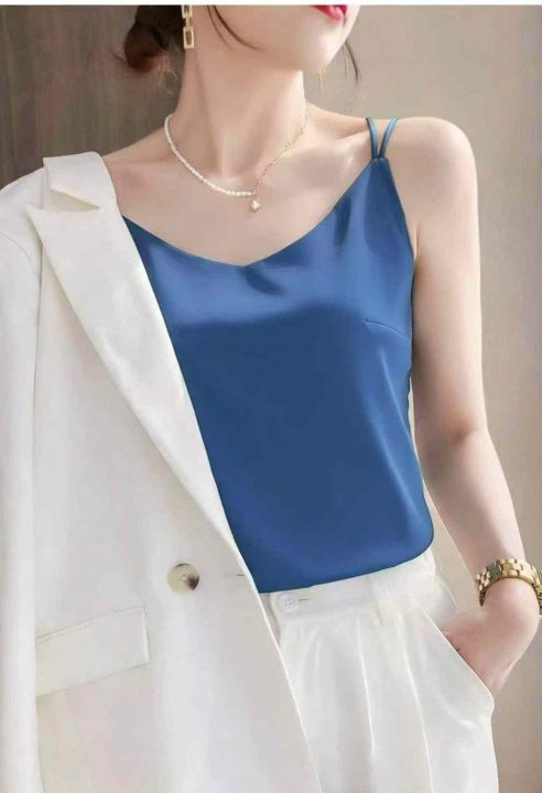 夏季新款法式防真丝缎面冰丝西装打底宽松吊带,独立包...