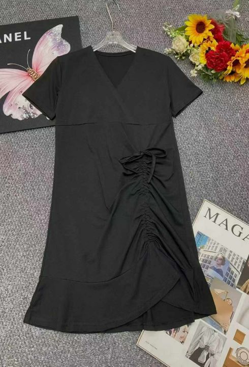 夏季新款赫本风高级感收腰显瘦抽绳V领褶皱小黑裙,独立包装,工厂新货1-4码, 560件左右,全清4.9元超低价秒杀!分货加一!