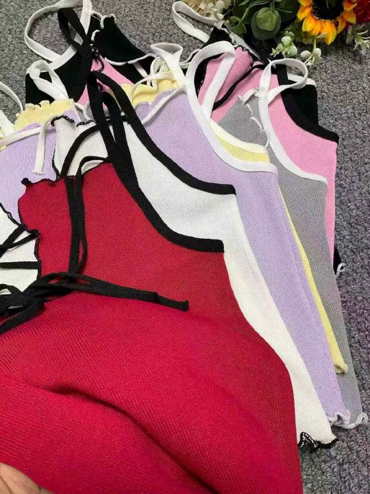 夏季新款网红爆款设计款辣妹性感纯欲风弹力修身针织吊...