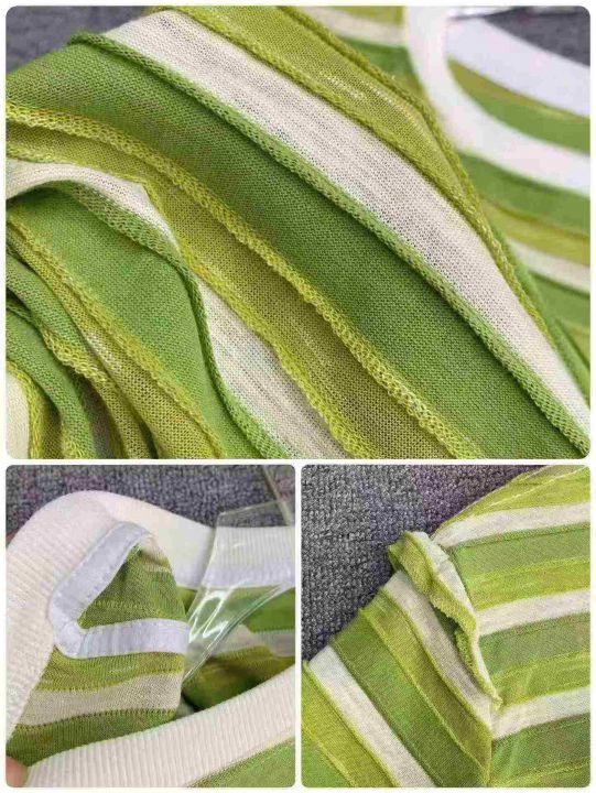 肌理感条纹短袖301件7.8,面料柔软舒适,后领包边到肩...