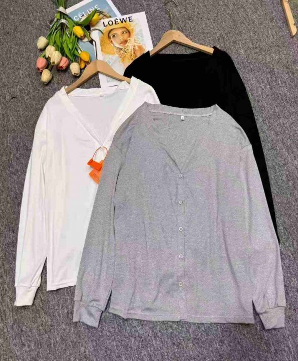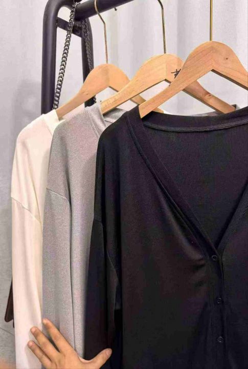 慵懒风垂坠感宽松V领长袖休闲开衫外套,独立包装,整款三色,弹力好,码数1-3(S-L),数量150件