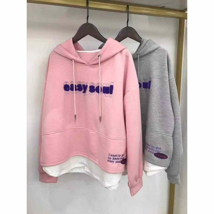6.8清72件学院风假两件连帽刺绣春季卫衣,码数S-2XL。...