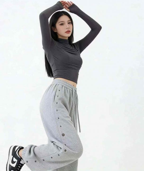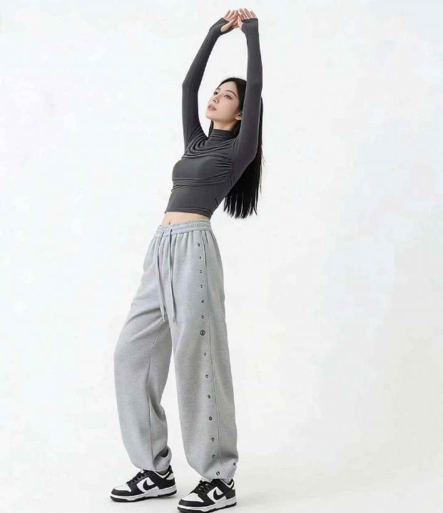美式复古运动裤女高腰显瘦窄版阔腿裤卫裤休闲裤码数:1-3码(m-xl)数量:2...
