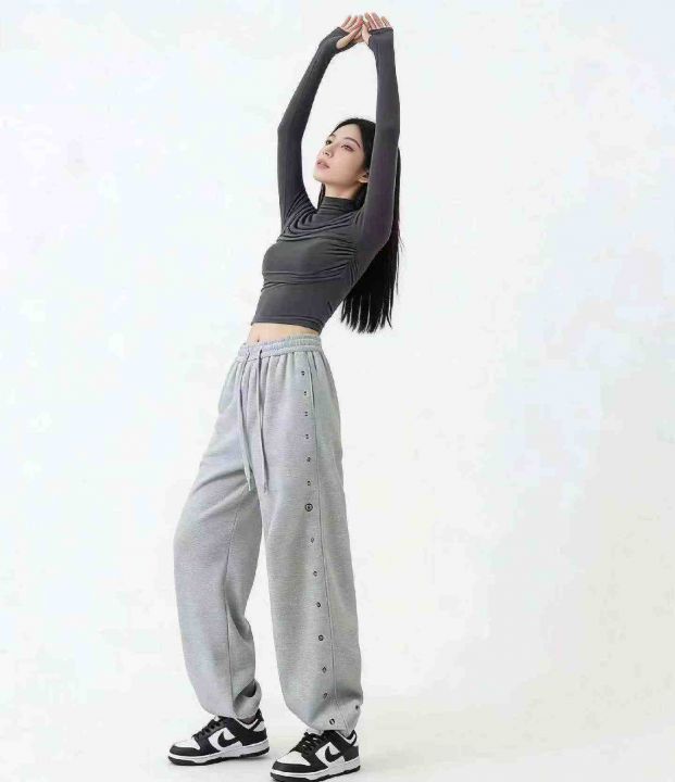 春季新款网红复古字母刺绣纯棉松紧腰束脚休闲卫裤,独...