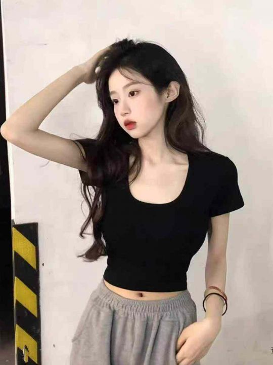 19000多件纯欲性感低胸v领泡泡短袖t恤女夏季甜辣妹绝美显身材修身上衣,尺...