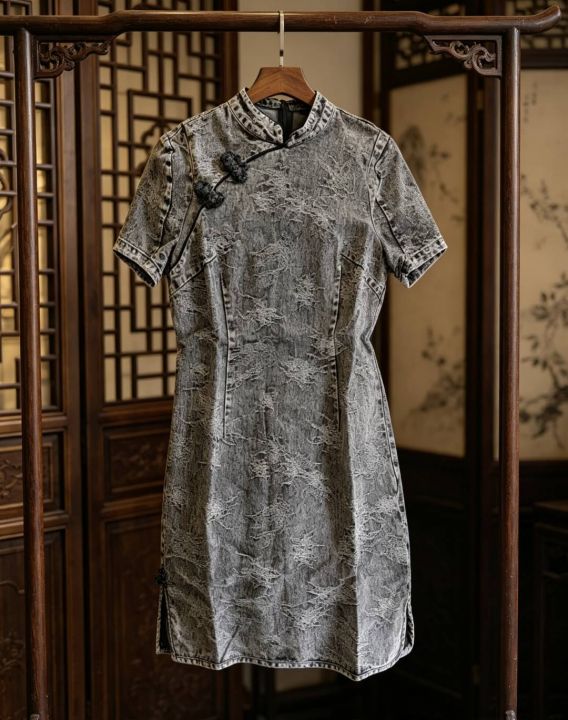 高端做旧提花牛仔旗袍|匠心工艺,演绎东方美学 直播间定制款总共90件。...