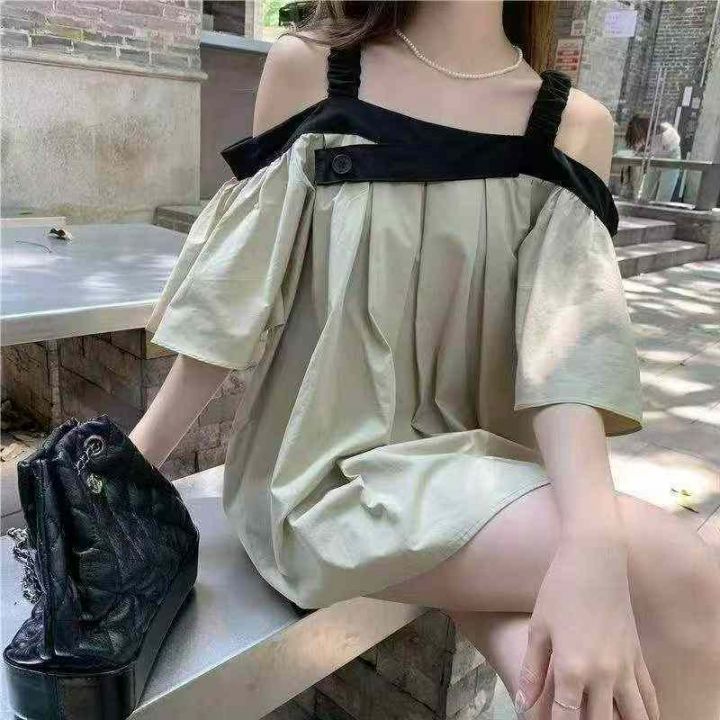 夏季新款法式甜美宽松漏肩气质休闲减龄小衫,独立包装...