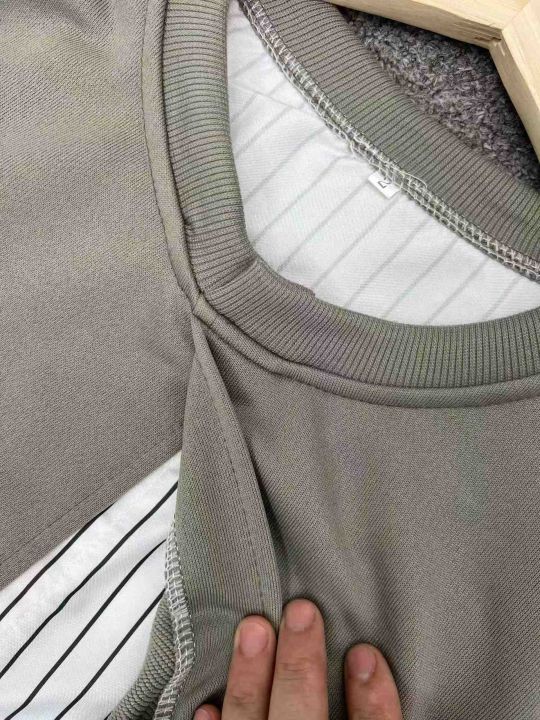 500件左右情侣款假两件套拼接刺绣圆领卫衣,单款单色,码数1-4。