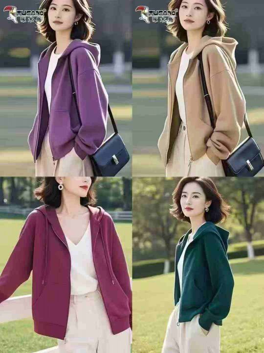 休闲连帽卫衣外套女2025春秋新款开衫上衣,1到6码,图...