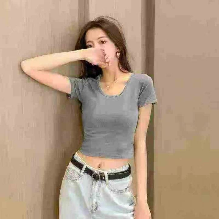露脐辣妹短袖t恤女糖果色修身显瘦短款上衣ins潮,独立包装,码数s-2XL,数量1191件,分货加1,货号111#7