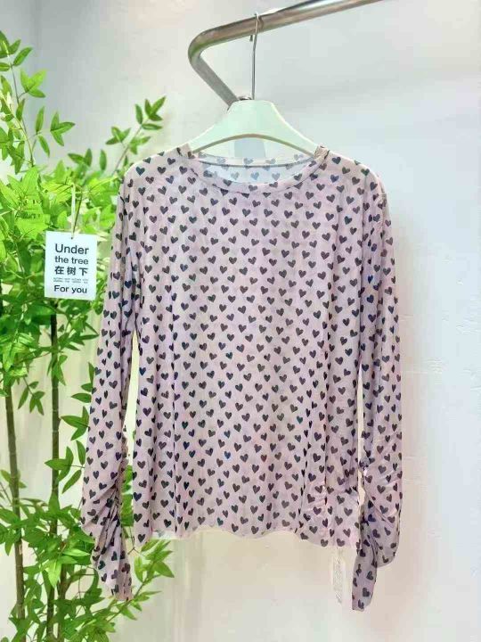 120件冰丝网纱打底衫女夏季薄款防晒罩衫圆领长袖内搭爱心印花蕾丝上衣,尺码s-2XL,质量好高弹力,零瑕疵,独立拉链包装,福利秒杀价4.9 不分货