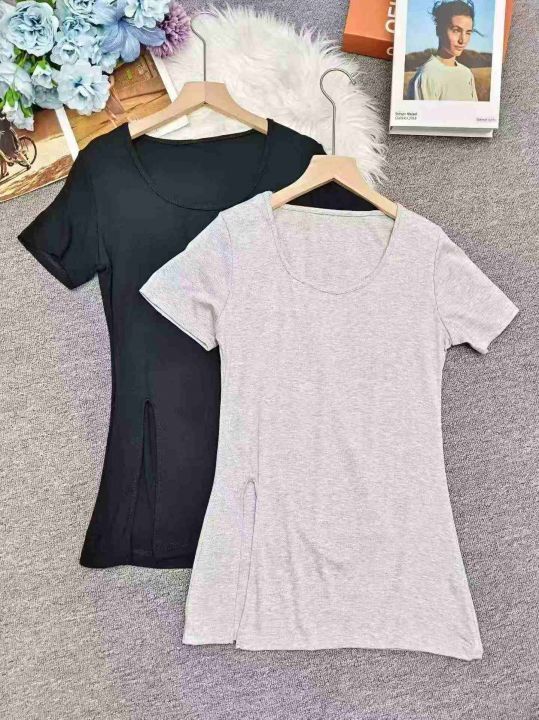 法式纯欲风设计感开叉短袖t恤棉上衣,独立包装,整款三色,面料柔软弹力好,码数M-3XL,数量114件