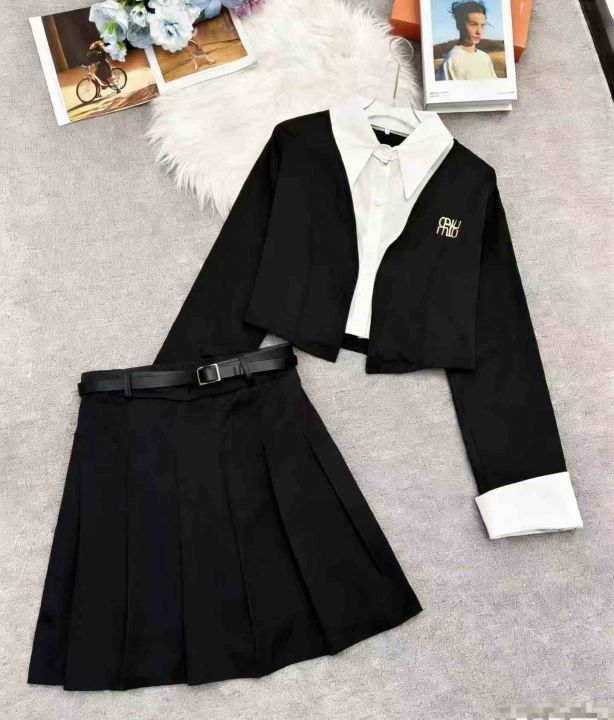 设计感气质减龄假两件套西服学院风百褶裙短裙套装,含皮带,独立包装,整款两色,码数1/2/3/4/6,数量219套