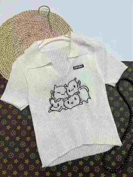 辣妹靓妹翻领露脐针织短袖,数量1634件,单款白色,刺绣工艺,面料柔软舒适弹力大,均码,独立包装,分货➕1元/件