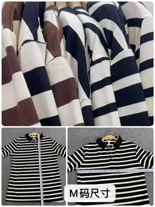 条纹短袖442件9.5,Polo领,面料舒适,圆领少,后领包...