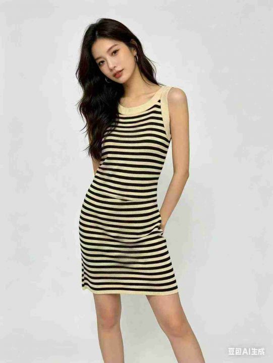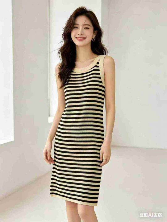 6.9元清条纹吊带背心针织连衣裙,面料柔软舒适弹力大...
