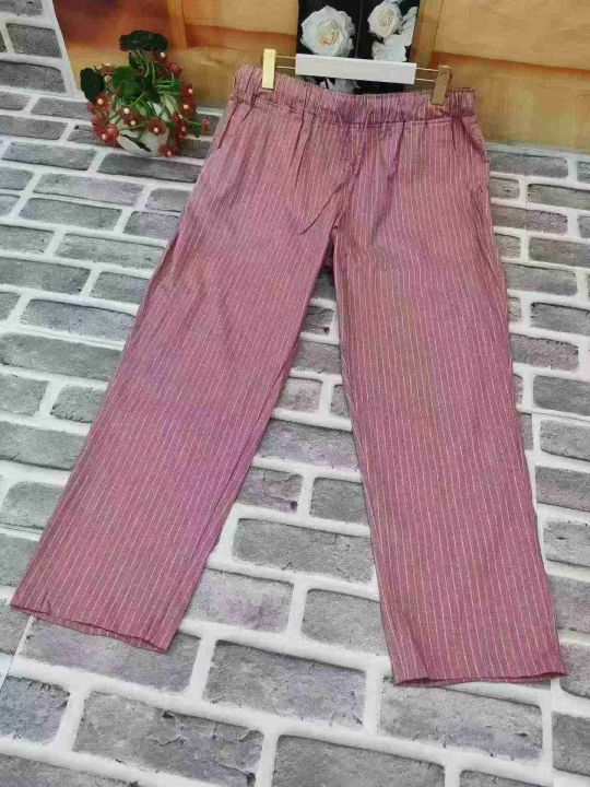 B063-C1,数量520件左右,码数S一2XL,全部独立包装,单款2个,纯棉棉麻面料,版型宽松,竖条纹休闲裤,女装休闲裤,实体店高品质,分货➕1