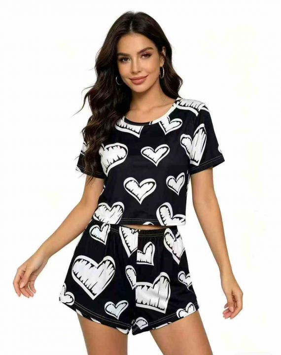 时尚洋气双短印花成人两件套,小整款花型图案多,品质...