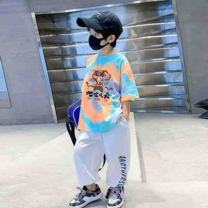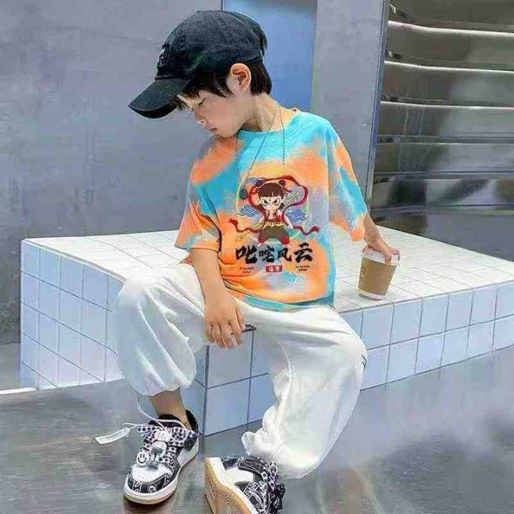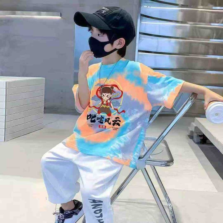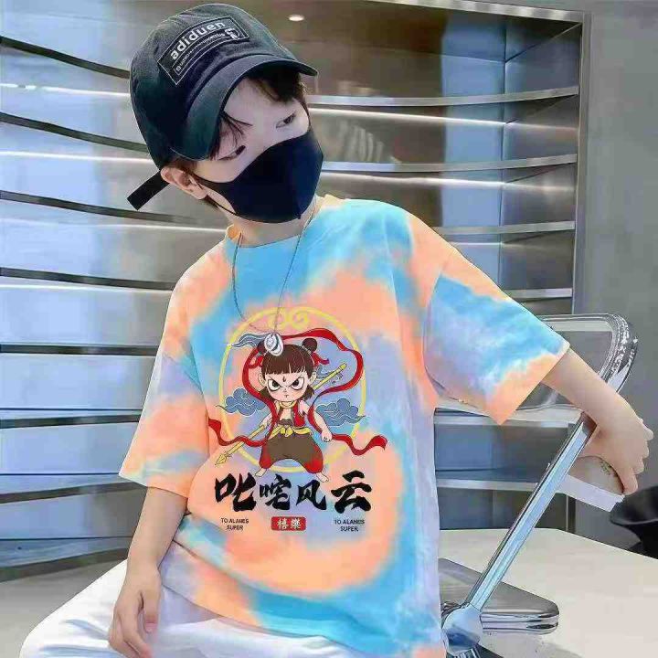 哪吒中大童纯棉短袖卡通动漫T恤宽松洋气透气扎染,数...