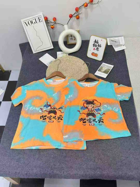 哪吒中大童纯棉短袖卡通动漫T恤宽松洋气透气扎染,数量443件,码数130-170,独立包装后领包边,全清4.8元