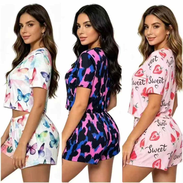 时尚洋气双短印花成人两件套,小整款花型图案多,品质...