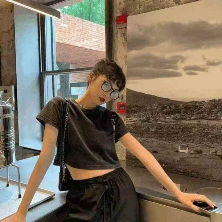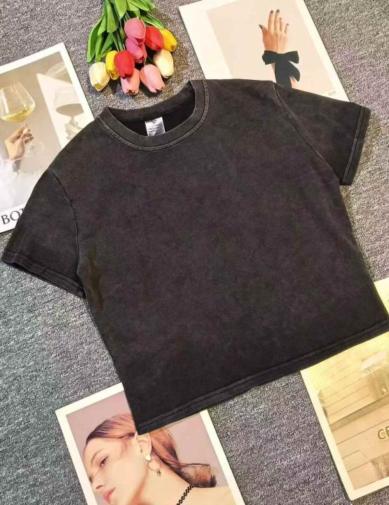 上新全清:3.99一件复古设计感做旧辣妹短款上衣T恤,[...