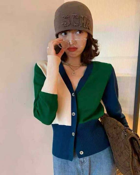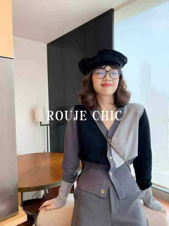 法国Rouje Chic法式小众修身v领针织开衫撞色减龄毛衣外套开衫春秋女,独立包装,233件,清7.8,分➕0.5