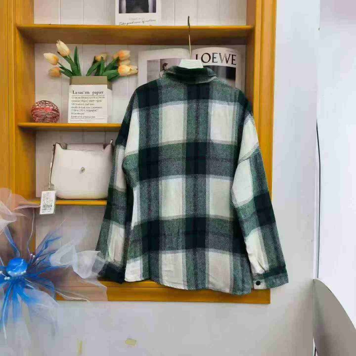 ① 撞色磨毛格男女同款长袖衬衫上衣!版型宽松,独立...