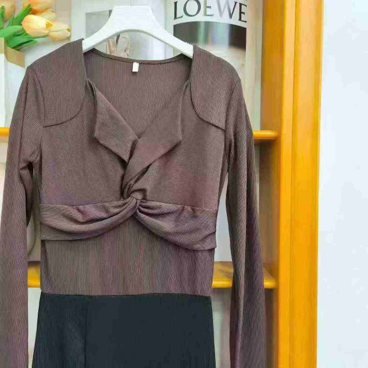 ① 高级感交叉扭结翻领长袖鱼尾连衣长裙!高弹力,独立包装,码数S-XL,数量700件左右,全清8.8元