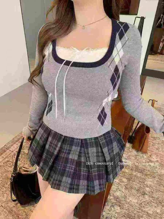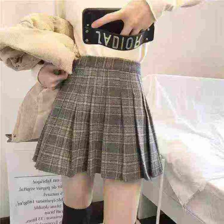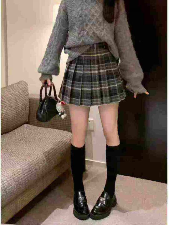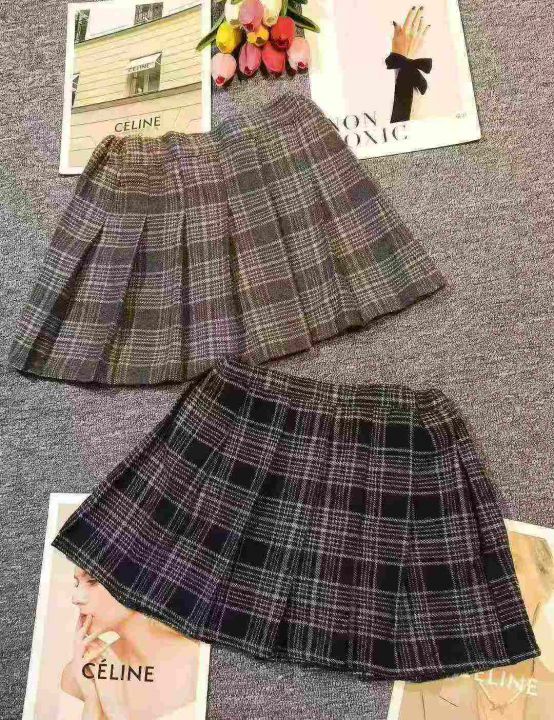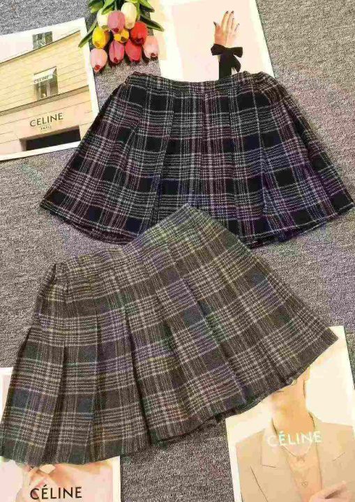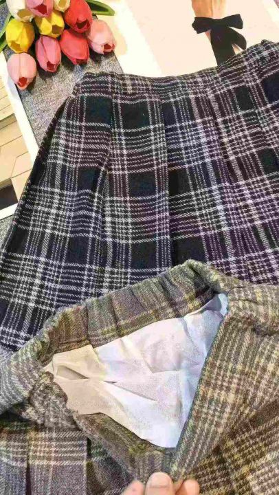 复古撞色设计感格纹毛呢百褶裙,数量79件...