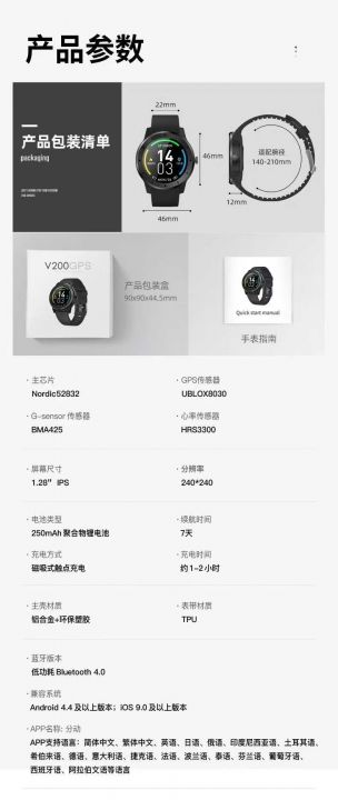 V200GPS 手表 600 个Nordic主控芯片,IP68防水,精准...