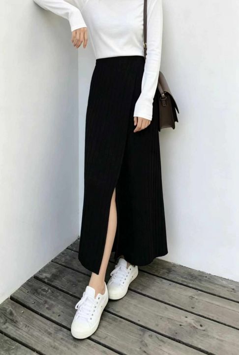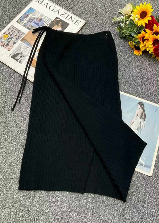 秋冬新款净版设计款包芯纱坑条绑绳半身毛衣裙,独立包...