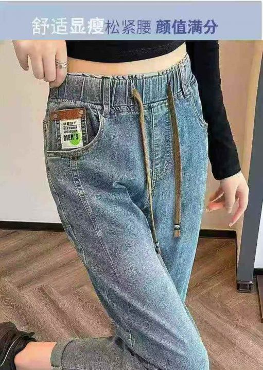 松紧腰哈伦高腰宽松弹力老爹牛仔裤,整款2色,独立包装,数量70条,26-34码,福利价11.8秒杀(88013#610)