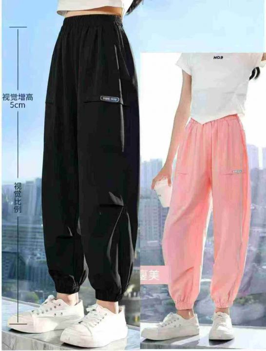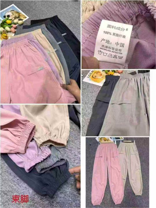 夏天热卖中大童男女同款薄款冰丝速干工装运动裤,独立包装,整款6色,质量可入实体店,码数120-170码(大码数多),数量1857条,分货加1,(K167)