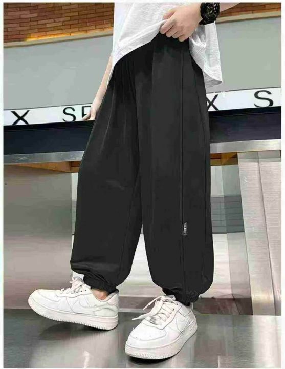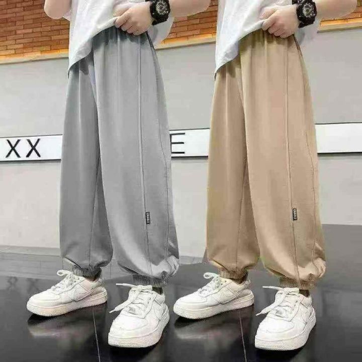 全清价7.8夏季热卖中大童男女同款冰丝休闲束脚运动裤...