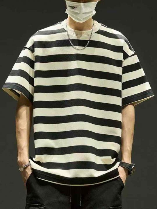 条纹短袖442件9.5,Polo领,面料舒适,圆领少,后领包...