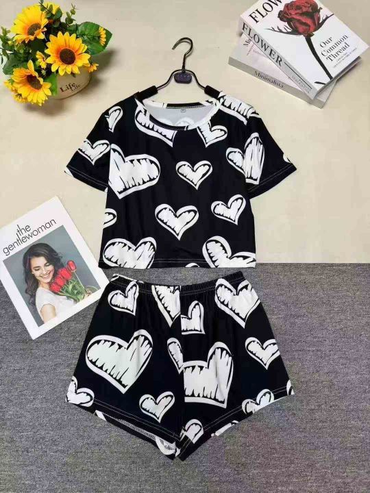 时尚洋气双短印花成人两件套,小整款花型图案多,品质...