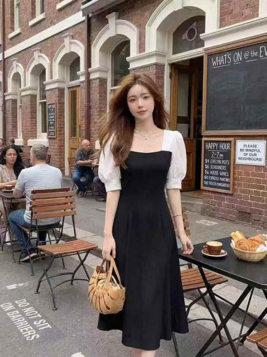 ① 御姐风气质女神范方领泡泡袖连衣裙!独立包装,码...