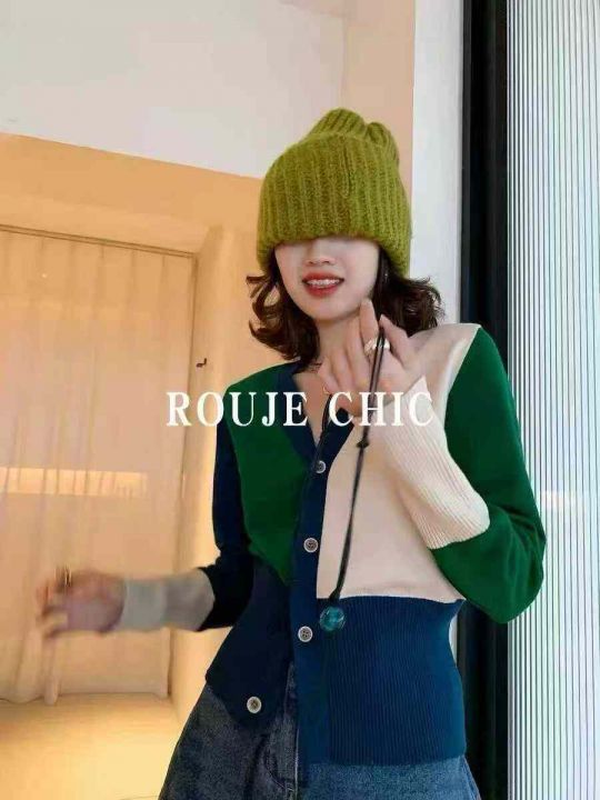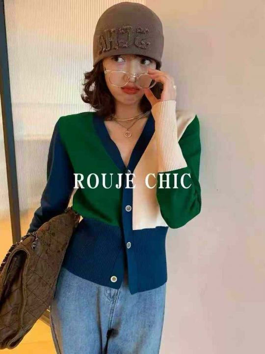 法国Rouje Chic法式小众修身v领针织开衫撞色减龄毛衣外套开衫春秋女,独立包装,233件,清7.8,分➕0.5