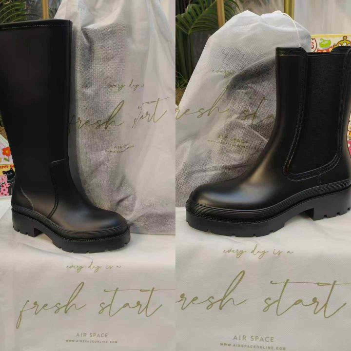 420双 来自中国台湾人气潮流品牌AIR SPACE 厚底中筒高筒晴雨两用防水靴,防滑耐磨、易打理、风格百搭。高筒272双、中筒148双,码数:36-37-38-40-41,无纺布防尘袋箱装,原价几百块一双。