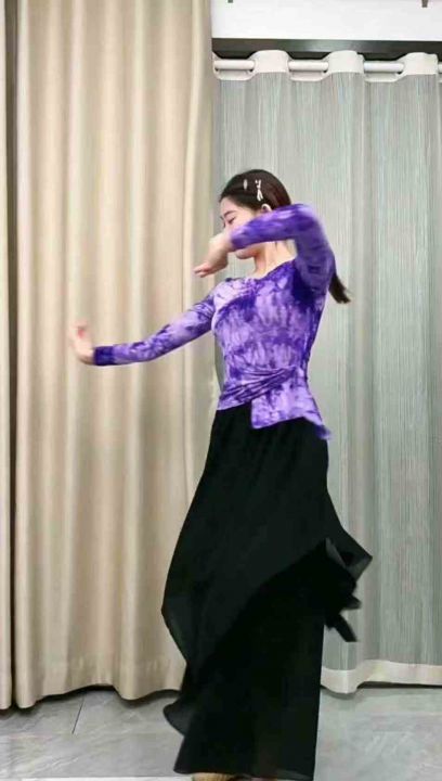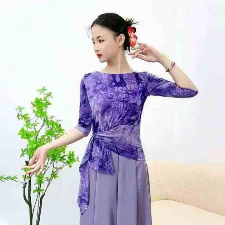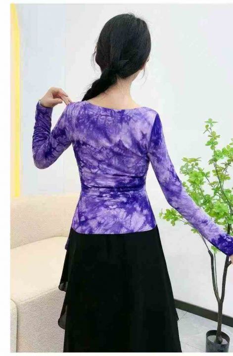 2025新款舞蹈练功服上衣长袖扎染系带收腰显瘦国风古典现代舞服装,205件,1-4码(型号5012#4)独立包装,分货➕1