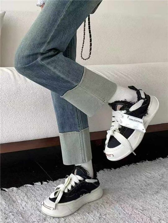 春夏季新款高弹力网红复古设计款直筒烟管牛仔裤,独立...