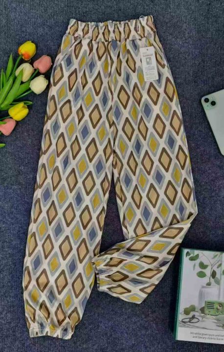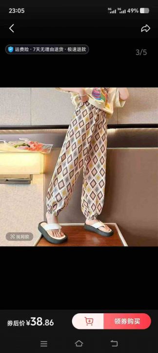 4.8元,中大童时尚印格冰丝裤,面料冰爽丝滑垂感有弹力,98件,2-7码,独立包装吊牌,全清4.8元,不分货