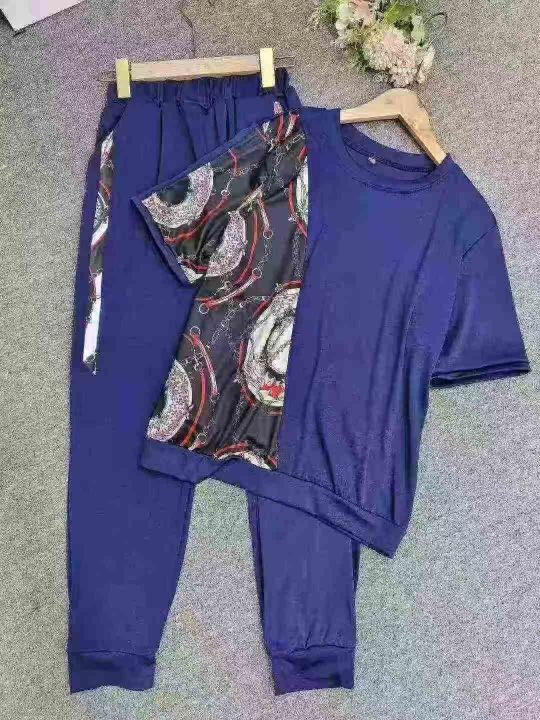 200斤胖mm大码时尚套装女夏季新款运动休闲服印花圆领短袖两件套,图4图5为主,有个别几套其他色,M-5XL码,500套左右,9.8清,分货加1