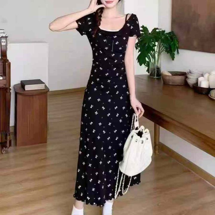 [月亮]:7.5清414件[月亮]:气质蕾丝边蝴蝶结印花假两件连衣裙[月亮]:234...