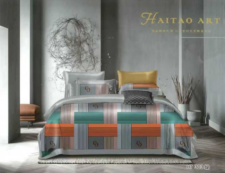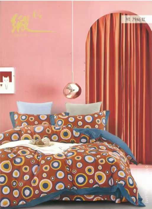 工艺:暗线被套、圆角吊边床单、宽边一字绣枕套