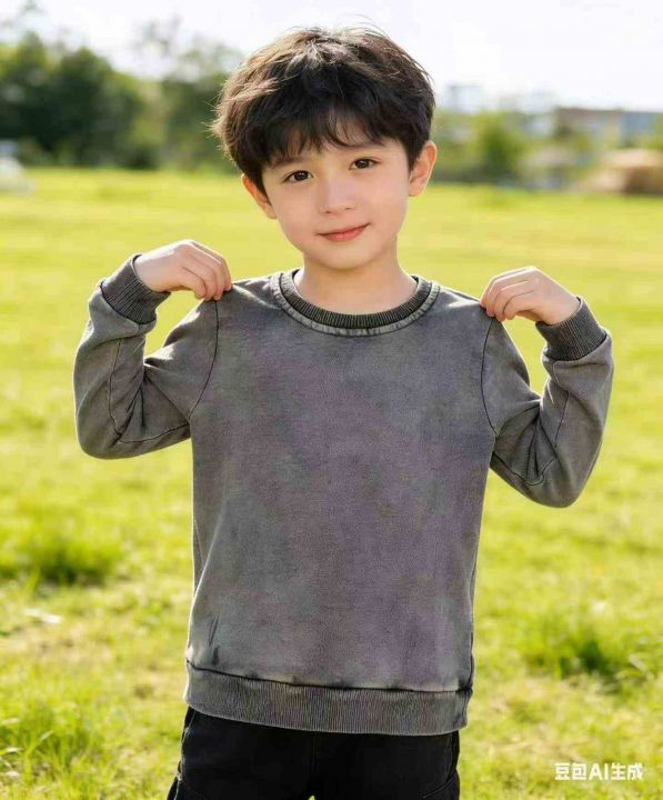 童装水洗做旧不规则超柔软毛圈圆领百搭舒适男女儿童卫衣
