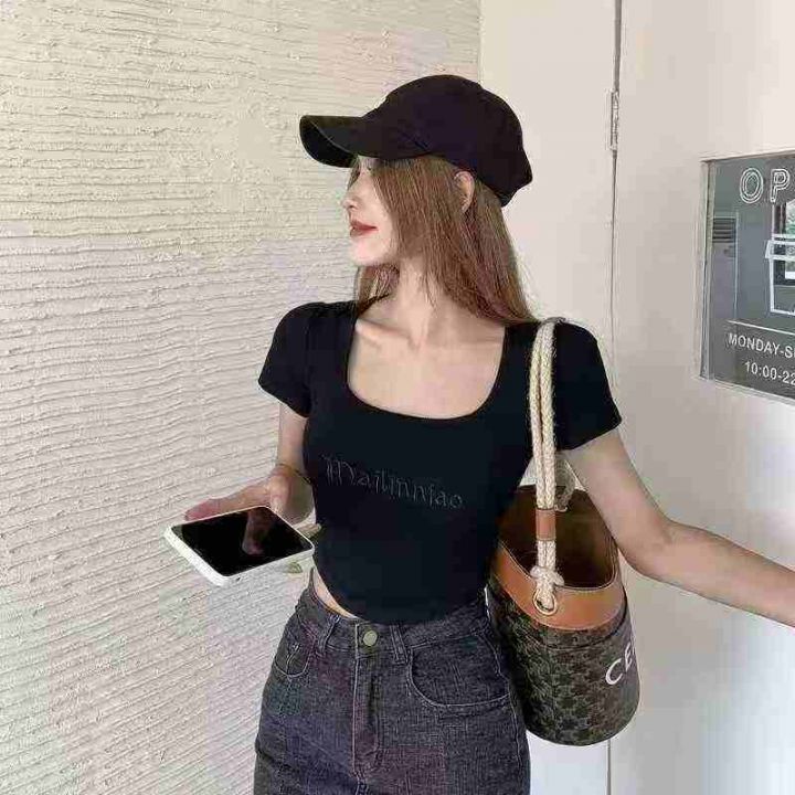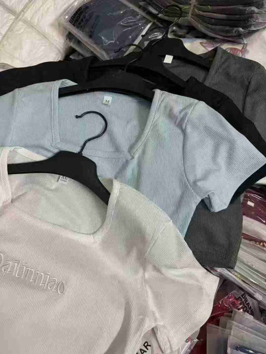 1600件\'辣妹U领垂感刺绣设计T恤,码数M-2XL,(高弹)独立包装,货品新净,品质️分货➕1,货号001#30